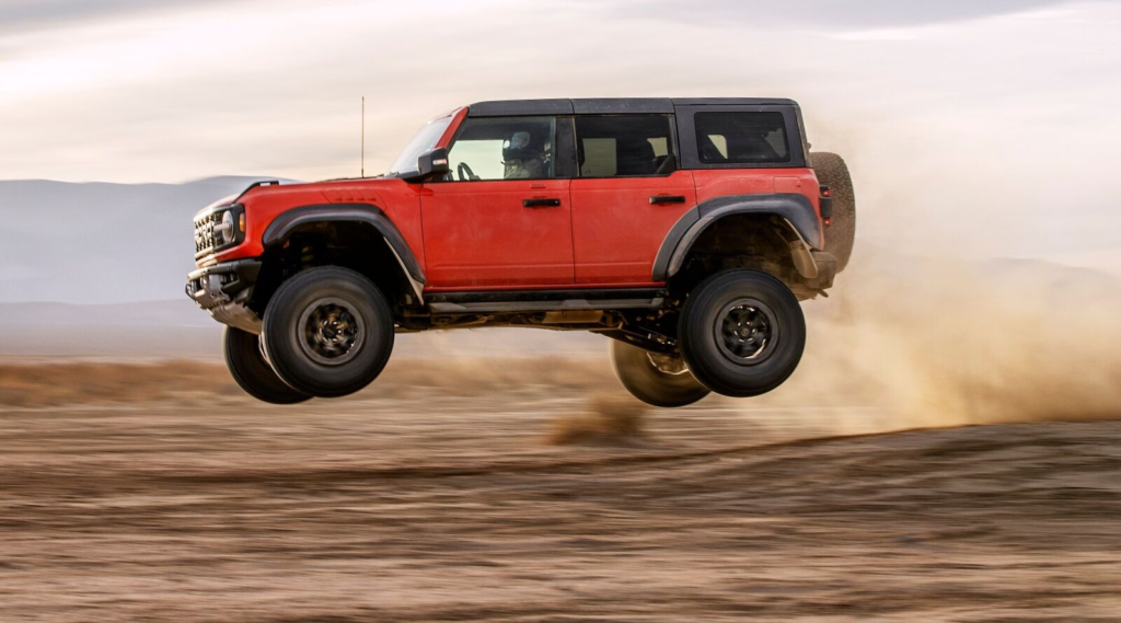 The Bronco Raptor has the strongest engine in the family, a 3.0L twin-turbo V6 with a 10-speed automated transmission that produces 418 horsepower, so it can lead the pack across the desert. This is more than 100 horsepower more than the 2.7L V6 engine found in other Bronco versions.